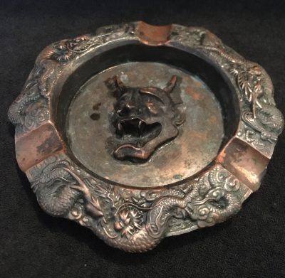 Fancy Vintage Metal Ashtray Made In Occupied Japan Circa.1945